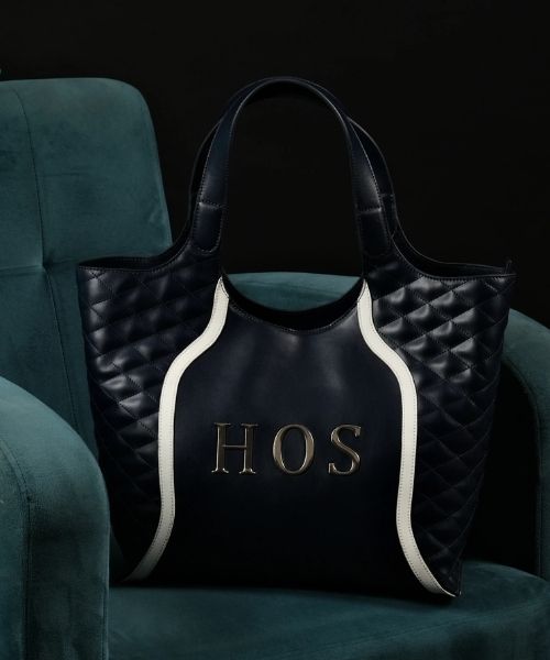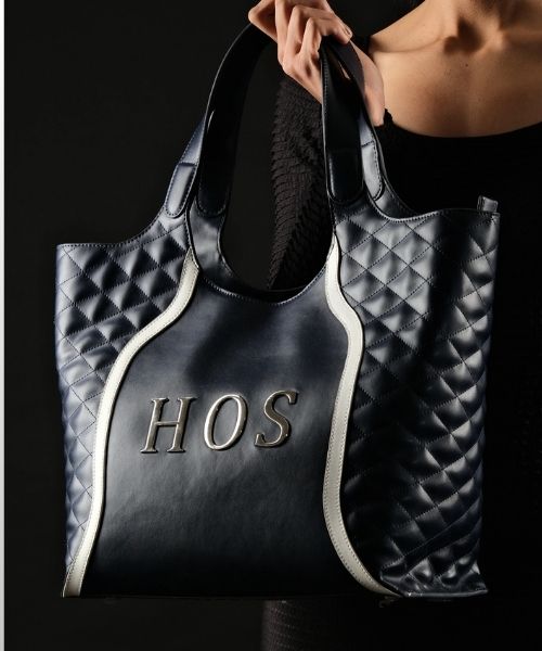 Crafted in premium Navy Cactus plant-based leather with quilted side panels and contrast white detailing, finished with Silver hardware and signature HOS branding for a refined, structured look.