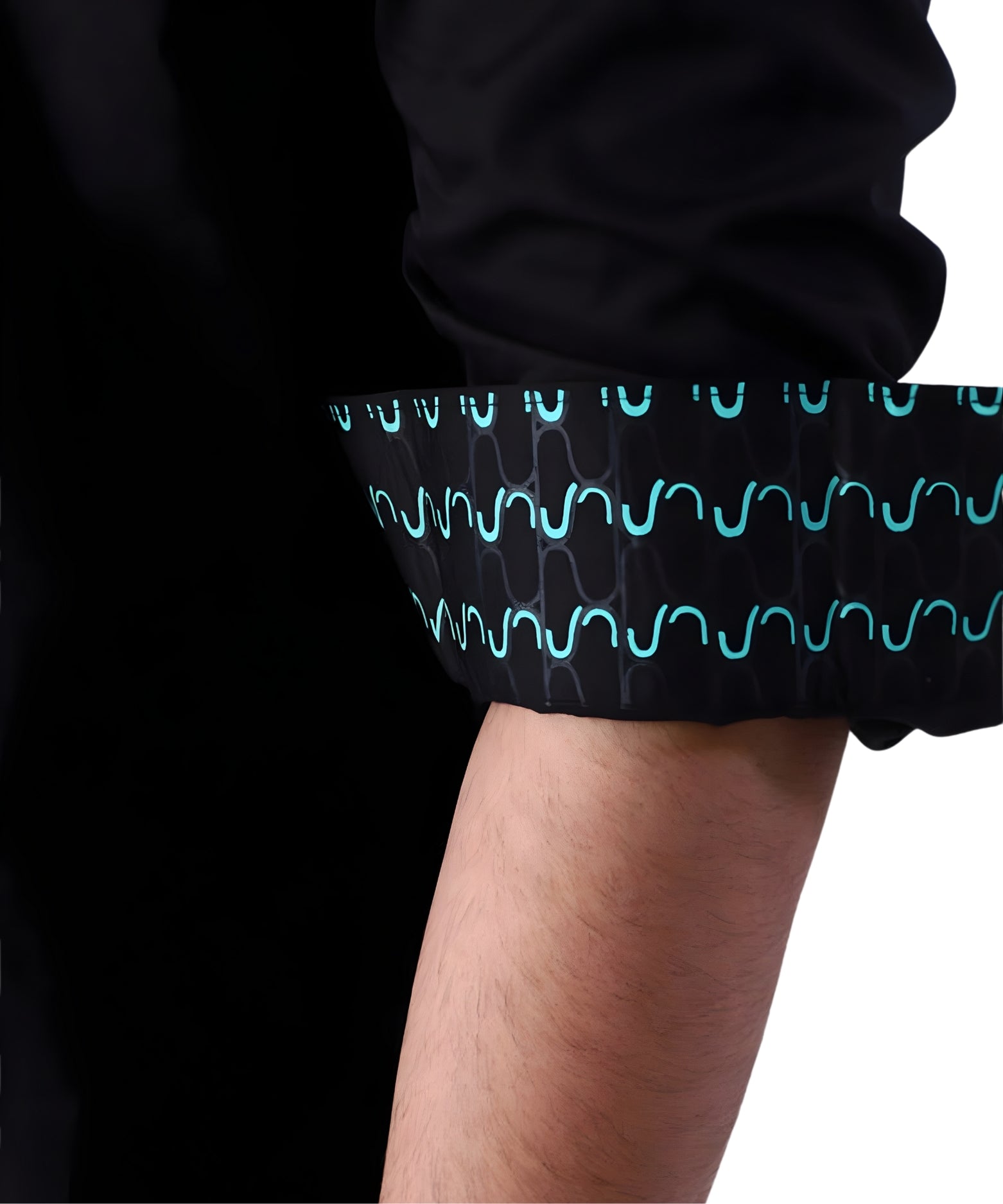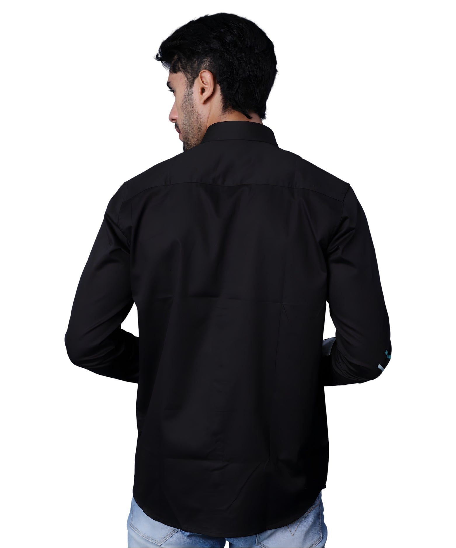 A black shirt that stays clean on the front while featuring a colour pop panel on the side, adding a unique design element. Finished with a printed cuff inside, it reveals its personality when the sleeves are casually rolled.